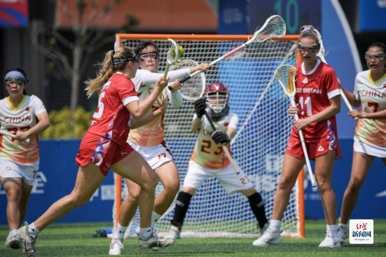 红星新闻网(特约摄影 张翔升)8月7日报道 8月7日,成都世运会六人制棍网球比赛在成都七中东部学校田径场开赛。中国女子棍网球队首战对阵英国队,经过双方激烈对抗,最终英国队以24-2获胜。